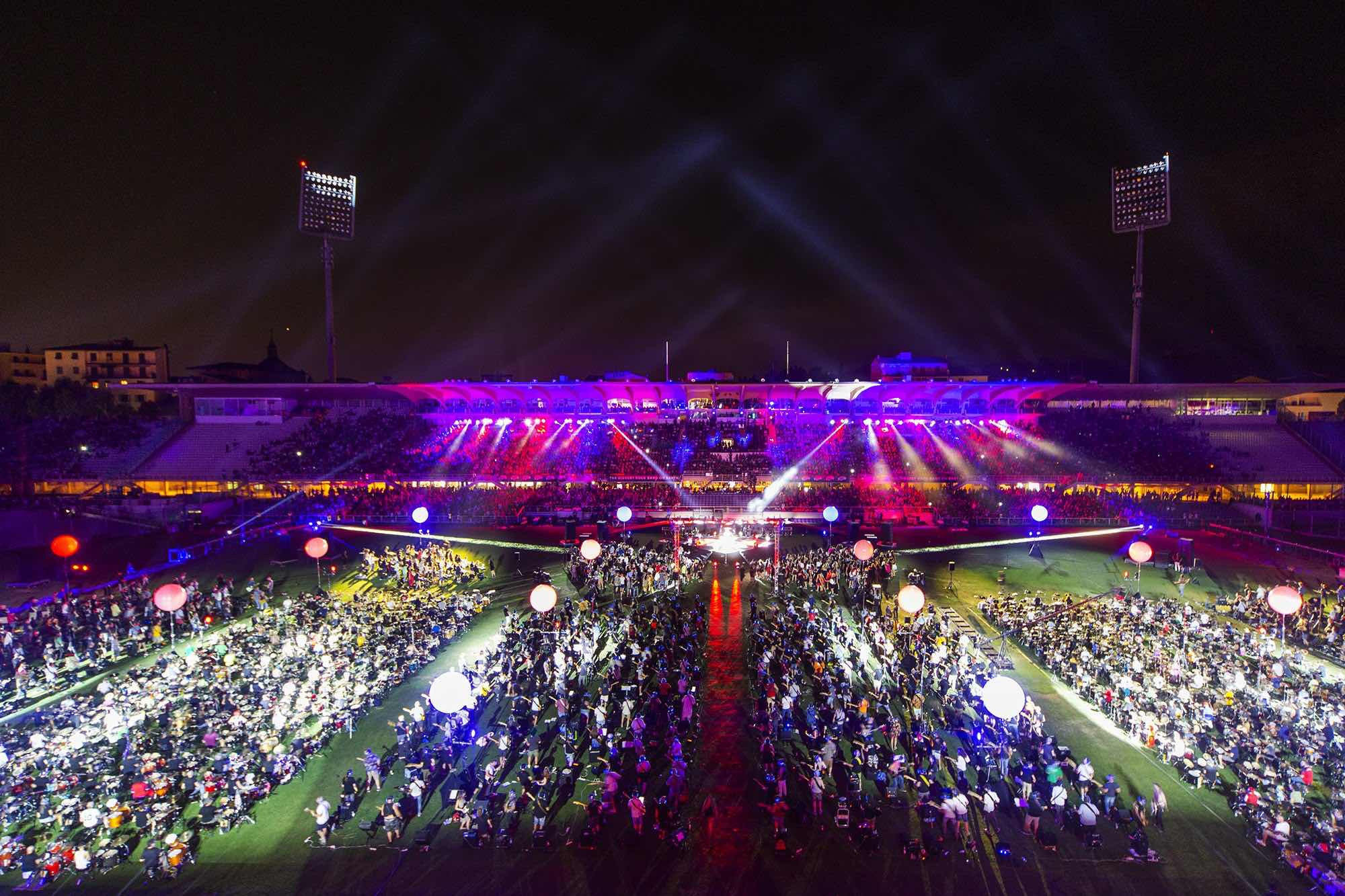 Una vera e propria orchestra di 1.500 elementi tra chitarre, batterie, bassi e voci ha suonato alcune delle più famose canzoni rock, dagli AC/DC ai Pixies, dai Foo Fighters agli Oasis, dai Nirvana ai The Black Keys.