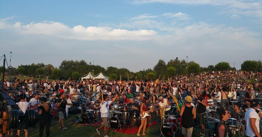 In Val Veny, uno dei luoghi più suggestivi della Valle d'Aosta ai piedi del Monte Bianco, si riunisce la rock band più grande del mondo. Un'iniziativa da record, quella dei Rockin' 1000, giunta già alla sua terza edizione.