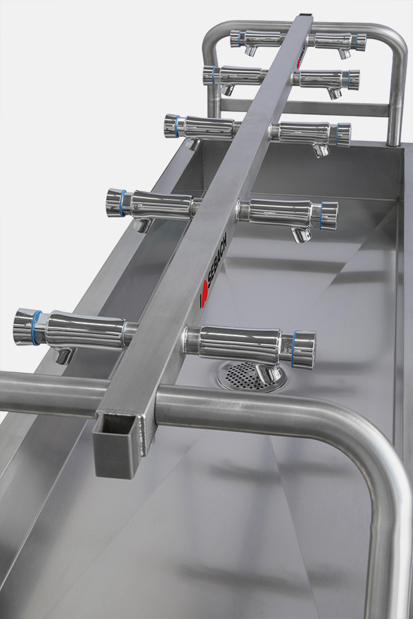 Aqualine 10 può essere utilizzato singolarmente oppure collegato in linea con altre unità, per coprire aree più estese e aumentare il numero di postazioni di lavaggio disponibili.